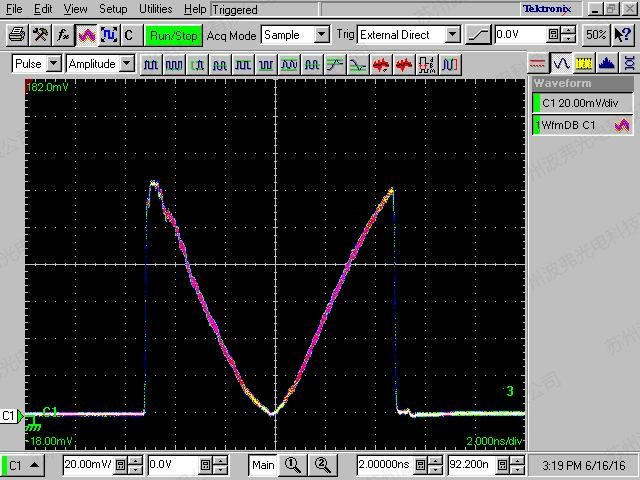 如图所示,60 000个脉冲叠加,我们可以看到低振荡和抖动的脉冲优异性,这个测量证明了ModBox-Front-end高稳定和可靠性的脉冲产生性能。