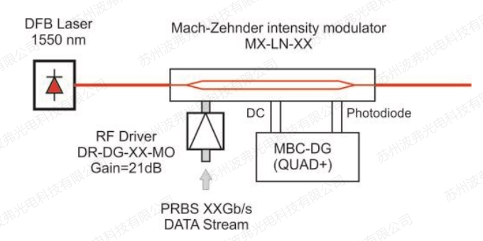 DR-AN-XX-MO系列驱动器适用于模拟调制。在这种应用中,输入信号可能是任意振幅和频率,驱动器和调制器的匹配要保证不对信号产生畸变和加入额外噪声。为此,放大器必须有较高的饱和值,就是说它必须完美的重现和放大输入信号,以避免从调制器输出的光信号发生畸变。
