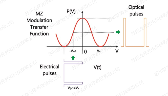 峰间电压Vp的电子脉冲信号施加到调制器上,产生高消光比的光脉冲信号