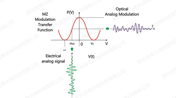 模拟电子信号 < Vp峰间电压作用于调制器上,重现输出光信号