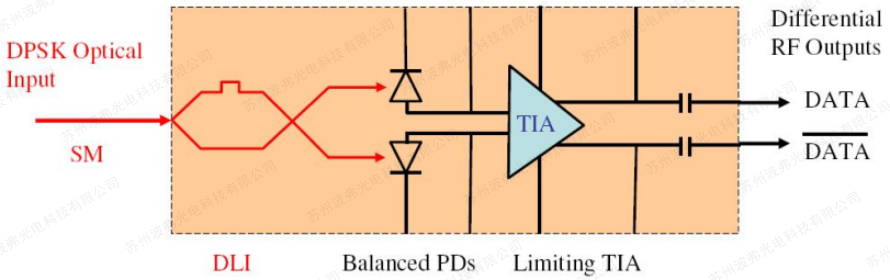 集成的DPSK接收器将延迟线干涉仪(DLI)与平衡接收器相结合,以在蝶形封装中实现紧凑的尺寸。与分立元件相比,集成接收器将来自DLI的光输出直接耦合到平衡光电探测器,除了消除光纤路由和匹配之外,还可以减少插入损耗和低通道偏移。